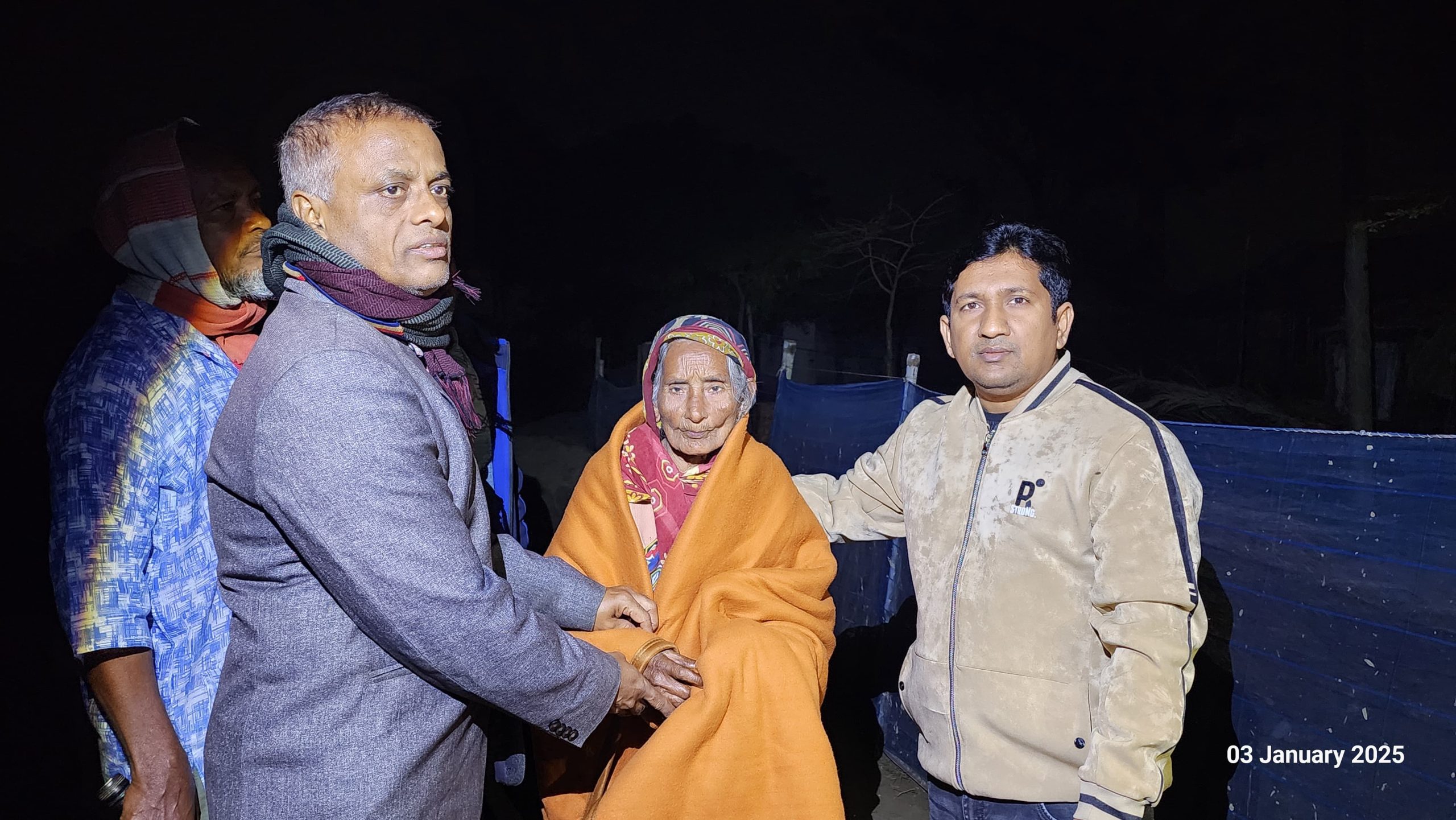 উপজেলার বিভিন্ন এলাকার শতাধিকের বেশি অসহায় ছিন্নমূল মানুষদেরকে শীতবস্ত্র বিতরনকালে উপজেলা সমাজসেবা কর্মকর্তা অধীর কুমার গাইন তার সাথে ছিলেন।