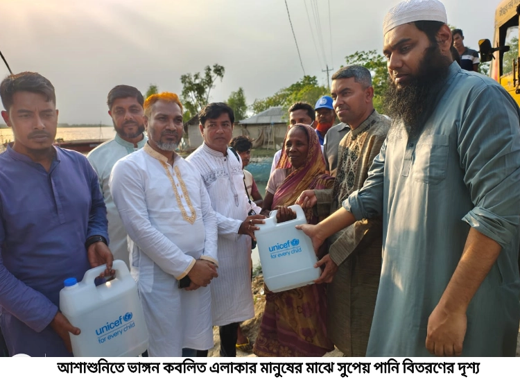 আশাশুনি উপজেলার আনুলিয়া ইউনিয়নে বেড়ী বাঁধ ভেঙ্গে পানিবন্দি হওয়া মানুষের মাঝে সুপেয় পানি বিতরণ করা হয়েছে। শুক্রবার সকালে উপজেলা জনস্বাস্থ্য প্রকৌশল অধিদপ্তর ও উপজেলা প্রশাসনের আয়োজনে এ পানি বিতরণ করা হয়।