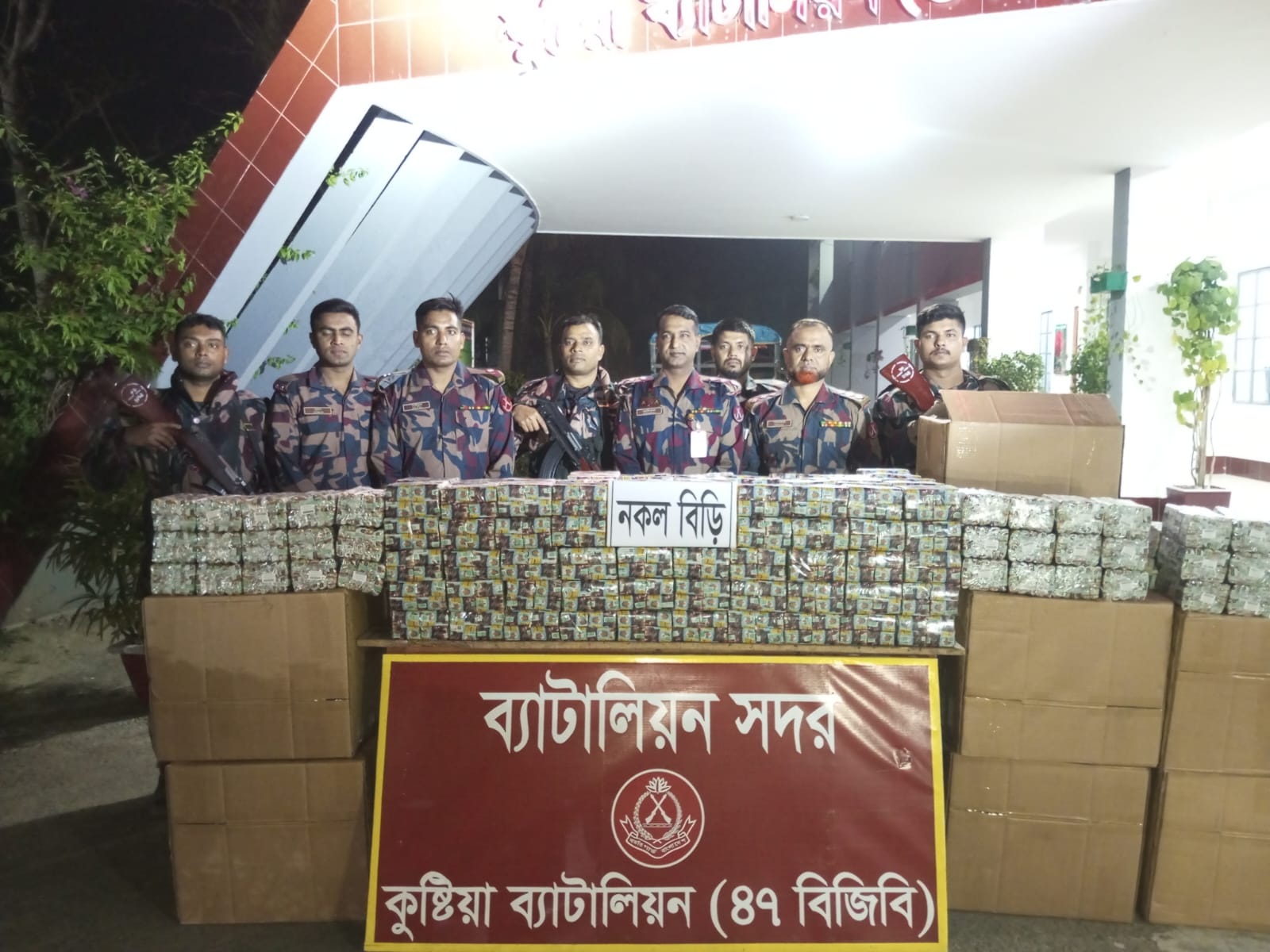 কুষ্টিয়া ব্যাটালিয়ন (৪৭ বিজিবি) সূত্রে জানা যায়, সরকারের মোটা অংকের টাকা রাজস্ব ফাঁকি দিয়ে কুষ্টিয়া জেলায় কতিপয় অসাধু চক্র দীর্ঘদিন ধরে নকল ব্যান্ডরোলযুক্ত বিড়ি উৎপাদন, বিক্রি ও বাজারজাত করে আসছে। রবিবার রাতে ভেড়ামারা উপজেলার গোলাপনগর থেকে পার্শ্ববর্তী কয়েকটি জেলায় সরবরাহের উদ্দেশ্যে একটি নসিমন গাড়িতে নকল ব্যান্ডরোলযুক্ত আকিজ বিড়ি বোঝাই করা হচ্ছে।
