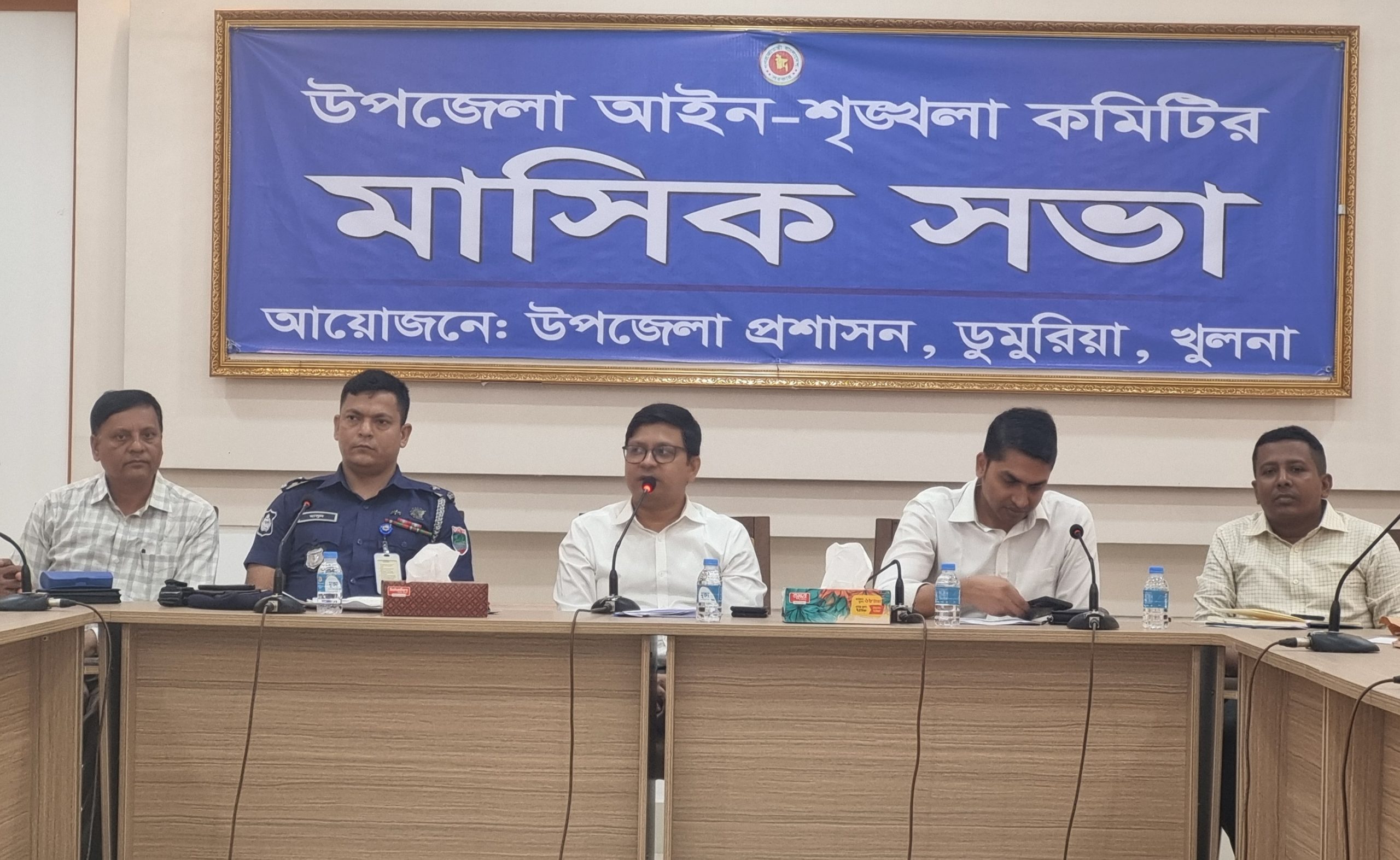 ডুমুরিয়া উপজেলা প্রশাসনের আয়োজনে আইন-শৃঙ্খলা কমিটির মাসিক সভা অনুষ্ঠিত হয়েছে। বুধবার সকাল ১০টায় উপজেলা কমপ্লেক্স সম্প্রসারিত প্রশাসনিক ভবনে এ সভার আয়োজন করা হয়।