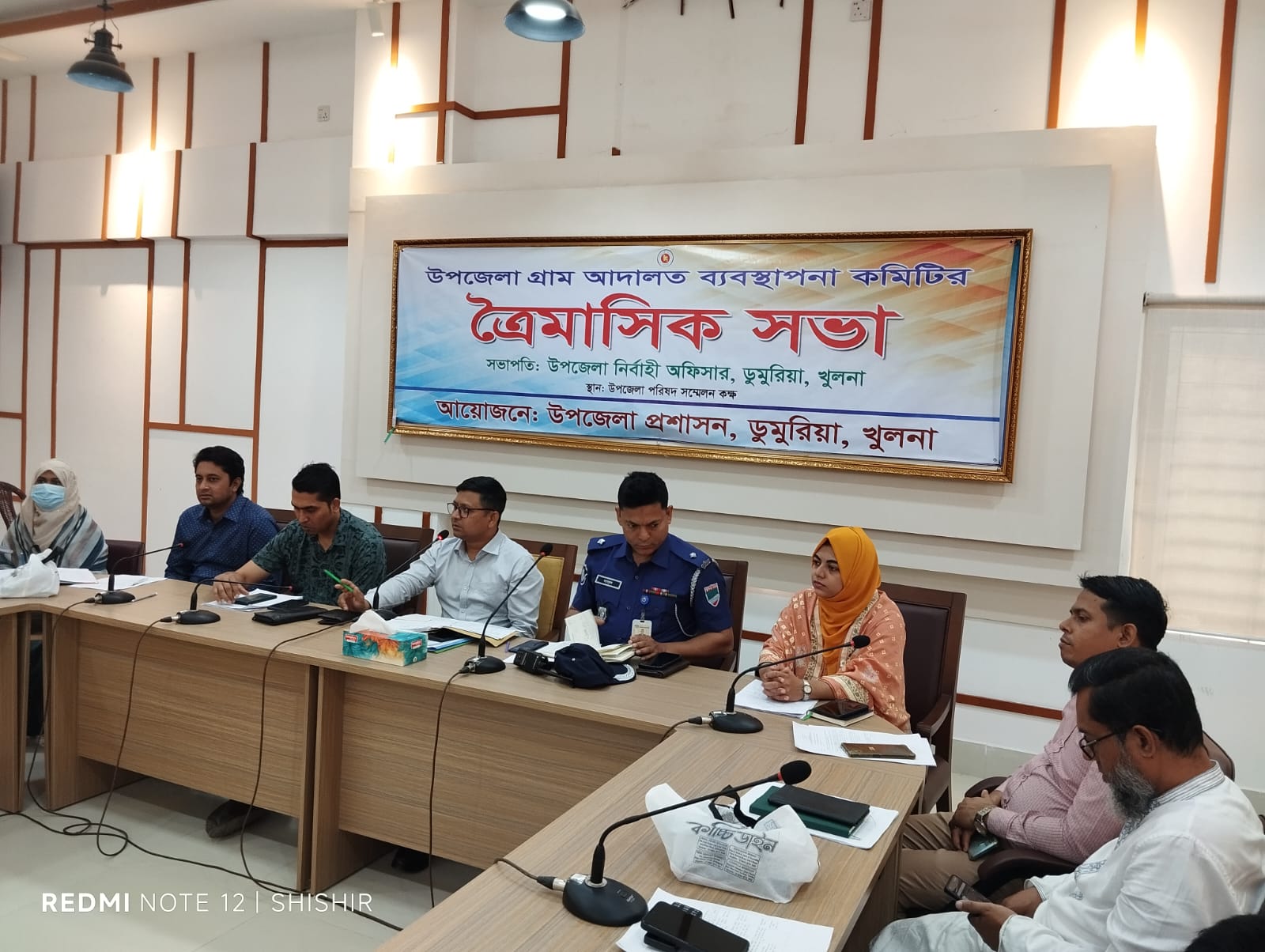 ডুমুরিয়া উপজেলা প্রশাসনের আয়োজনে ডুমুরিয়া উপজেলা নির্বাহী অফিসার ও উপজেলা গ্রাম আদালত ব্যবস্থাপনা কমিটির সভাপতি মো: আল-আমিন সভাপতিত্বে বৃহস্পতিবার (২০শে মার্চ) দুপুর ১২ টায় ডুমুরিয়া উপজেলা পরিষদ সম্মেলন কক্ষে এ ত্রৈমাসিক সভা অনুষ্ঠিত হয়।