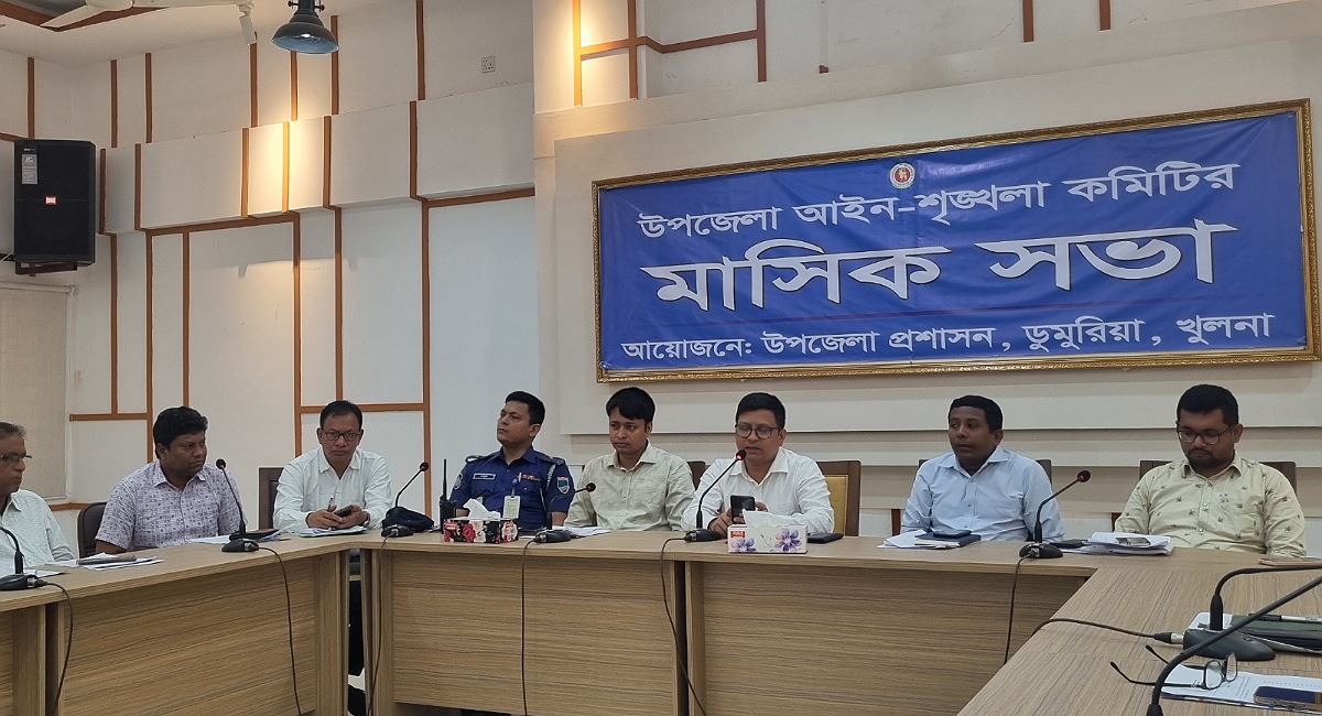 ডুমুরিয়া উপজেলা প্রশাসনের আয়োজনে খুলনার ডুমুরিয়ায় আইন-শৃঙ্খলা কমিটির মাসিক সভা অনুষ্ঠিত হয়েছে। মঙ্গলবার ২৭মে সকাল সাড়ে ১০টায় উপজেলা কমপ্লেক্স সম্প্রসারিত প্রশাসনিক ভবনে এ সভার আয়োজন করা হয়।