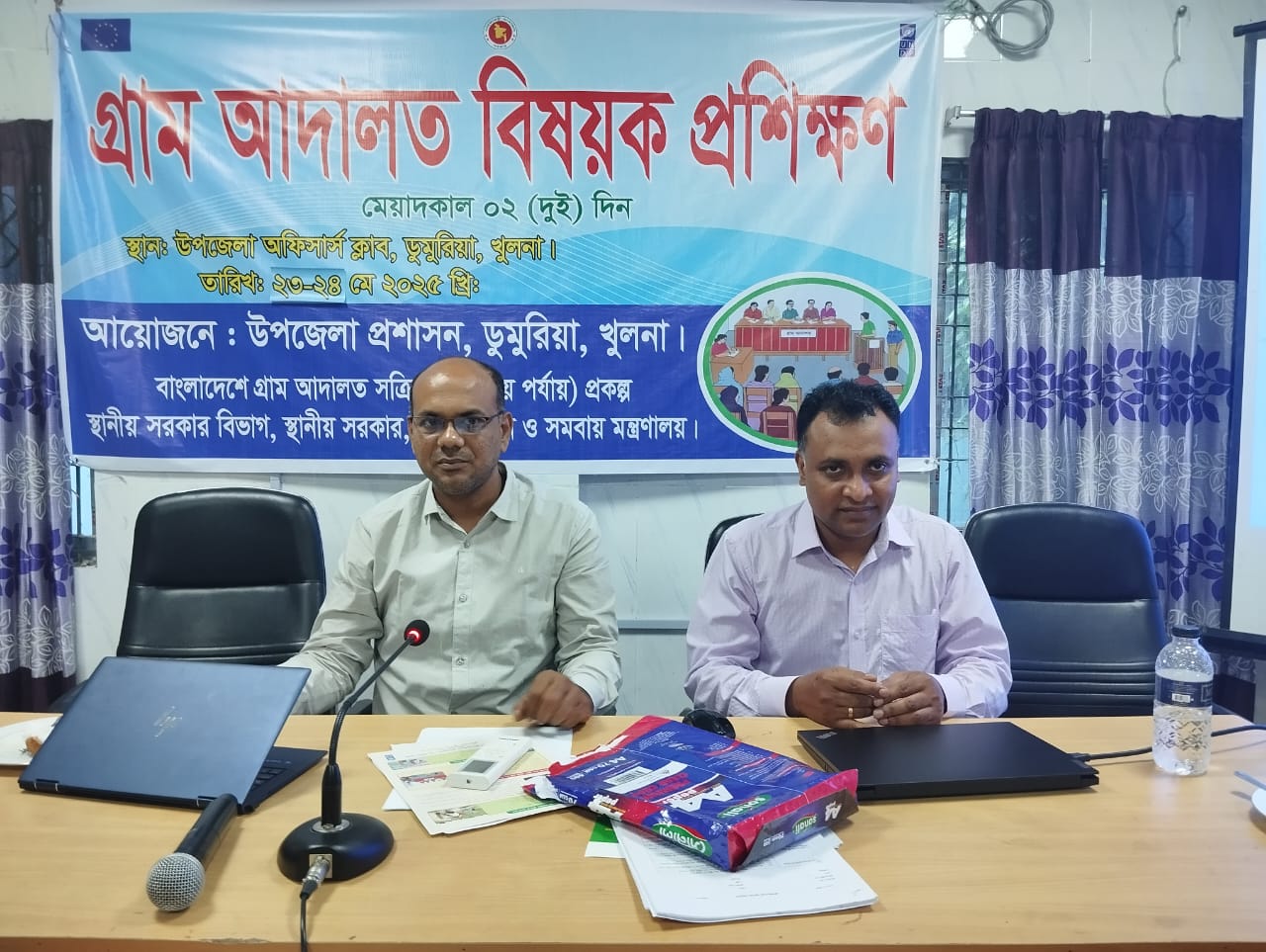 ডুমুরিয়া উপজেলা প্রশাসনের আয়োজনে স্থানীয় সরকার বিভাগ, স্থানীয় সরকার, পল্লী উন্নয়ন ও সমবায় মন্ত্রণালয়ের আওতায় বাংলাদেশে গ্রাম আদালত সক্রিয়করণ (৩য় পর্যায়) প্রকল্পের বাস্তবায়নে ডুমুরিয়ায় উপজেলার সকল ইউপি সদস্যদের অংশগ্রহণে এ প্রশিক্ষণ অনুষ্ঠিত হয়।