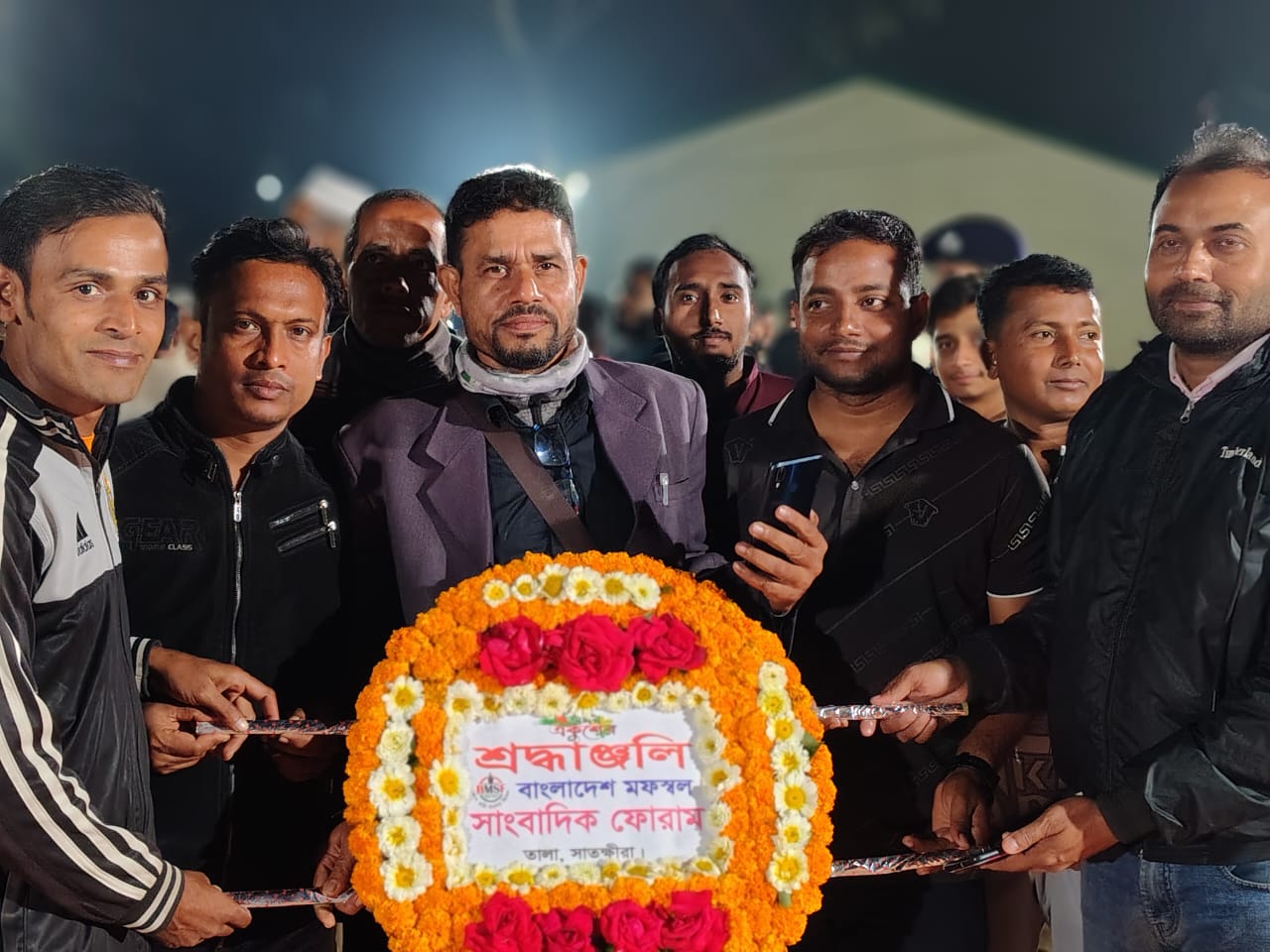এসময় বাংলাদেশ মফস্বল সাংবাদিক ফোরামের উদ্যোগে পুষ্পমাল্য অর্পণে উপস্থিত ছিলেন, সাংবাদিক ফোরামের সভাপতি এম এ ফয়সাল(দৈনিক যুগের বার্তা/ বাংলাদেশ টুডে) সাধারণ সম্পাদক ইলিয়াস হোসেন(দৈনিক যায়যায়দিন/খুলনাঞ্চল),বি এম জুলফিকার রায়হান( দৈনিক সংবাদ/প্রবাহ/ পত্রদূত) অর্জুন বিশ্বাস( দৈনিক বাংলাদেশ বুলেটিন/ দক্ষিনাঞ্চল প্রতিদিন) জাহাঙ্গীর হোসেন (দৈনিক ইনকিলাব), রোকনুজ্জামান টিপু(দৈনিক কালের কন্ঠ/খুলনা টাইমস্), জয়দেব চক্রবর্তী (দৈনিক আমার দেশ), আজিজুর রহমান প্রমুখ ।