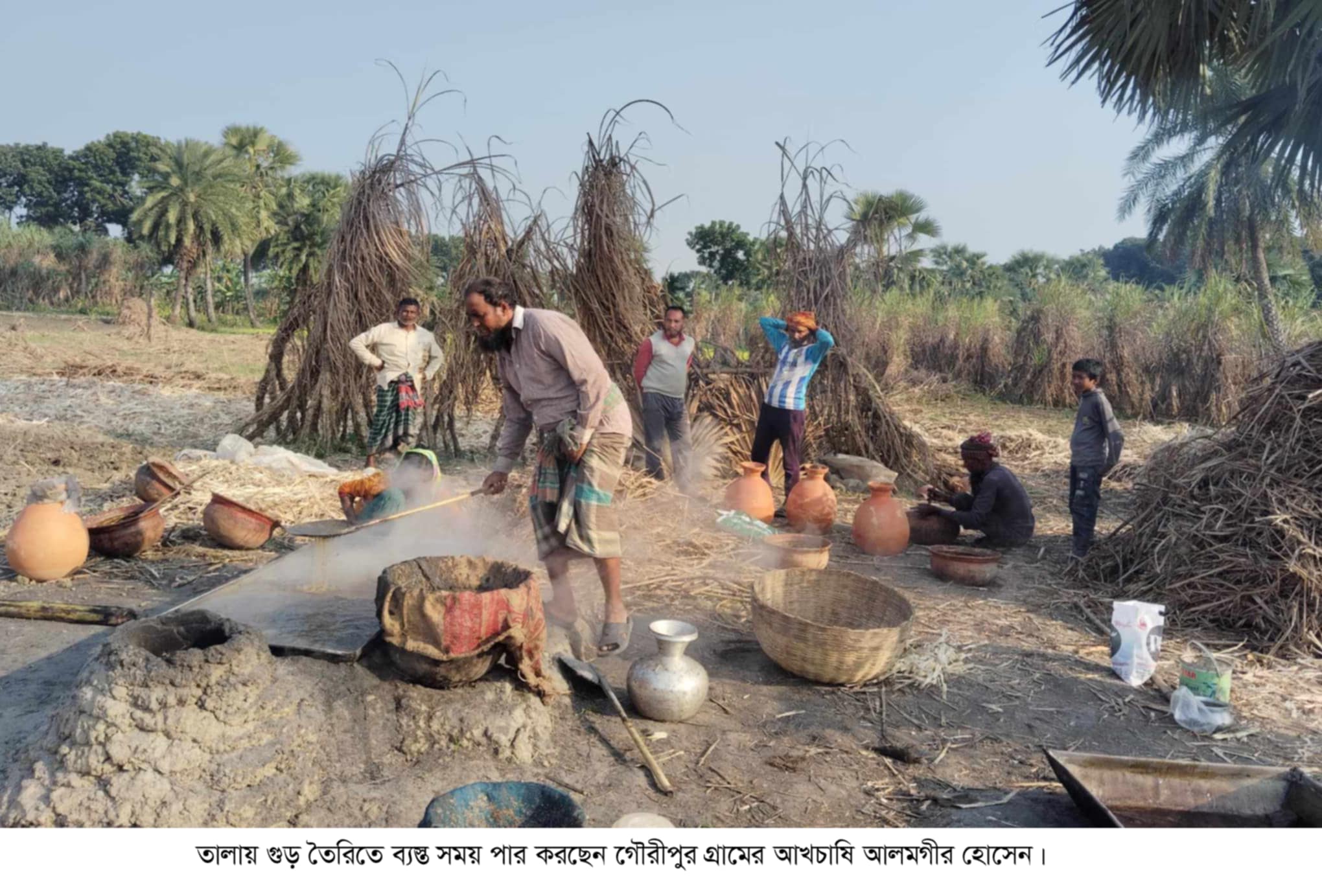 মৃদু শীত উপেক্ষা করে গুড় তৈরিতে ব্যস্ত সময় পার করছেন তালা উপজেলার আখ চাষিরা। একদিকে আখ কেটে সংগ্রহ করা হচ্ছে, অন্যদিকে কেটে আনা আখ থেকে মেশিনের মাধ্যমে রস সংগ্রহ করে সেই রস জাল দিয়ে তৈরি করা হচ্ছে গুড়।
