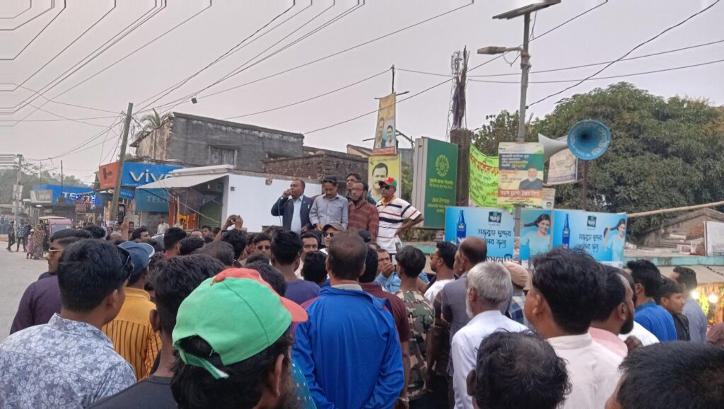 মঙ্গলবার ( ১৮ ফেব্রুয়ারী) বিকেলে বিএনপি ও যুবদলের নেতৃত্বে জনতা ব্যাংক এর সামনে থেকে একটি বিক্ষোভ মিছিল বের হয়। পরে তিন রাস্তার মোড়ে এক প্রতিবাদ সভায় সভাপতিত্ব করেন সাবেক উপজেলা যুবদলের সভাপতি বিশ্বাস অজেত আলী।