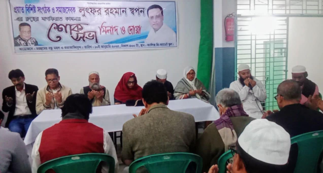 সদ্য প্রয়াত সংগঠক ও বিশিষ্ট সমাজ সেবক মরহুম লুৎফর রহমান স্বপনের রুহের মাগফেরাত কামনার ফতুল্লায় স্মরণ সভা ও দোয়া মাহফিল অনুষ্ঠিত হয়েছে।