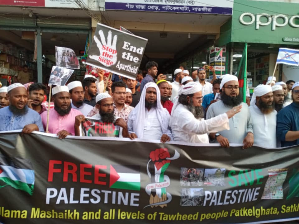 ফিলিস্তিনে মুসলিমদের ওপর ইসরায়েলের বর্বর হামলা ও মোদি সরকারের মদদে ভারতীয় মুসলিম নির্যাতনের প্রতিবাদে বিক্ষোভ মিছিল ও সমাবেশ করেছেন তালা উপজেলার পাটকেলঘাটার সর্বস্তরের তৌহিদী জনতা।