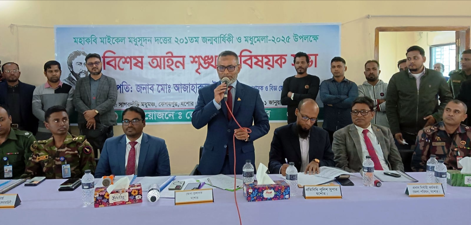 কেশবপুরের সাগরদাঁড়িতে মহাকবি মাইকেল মধুসূদন দত্তের ২০১তম জন্মবার্ষিকী ও মধুমেলা উপলক্ষে বিশেষ আইন শৃঙ্খলা বিষয়ক সভা অনুষ্ঠিত হয়েছে। শনিবার দুপুরে যশোর জেলা প্রশাসনের উদ্যোগে কেশবপুরের সাগরদাঁড়ির মধুমঞ্চ মিলনায়তনে ওই সভার আয়োজন করা হয়।