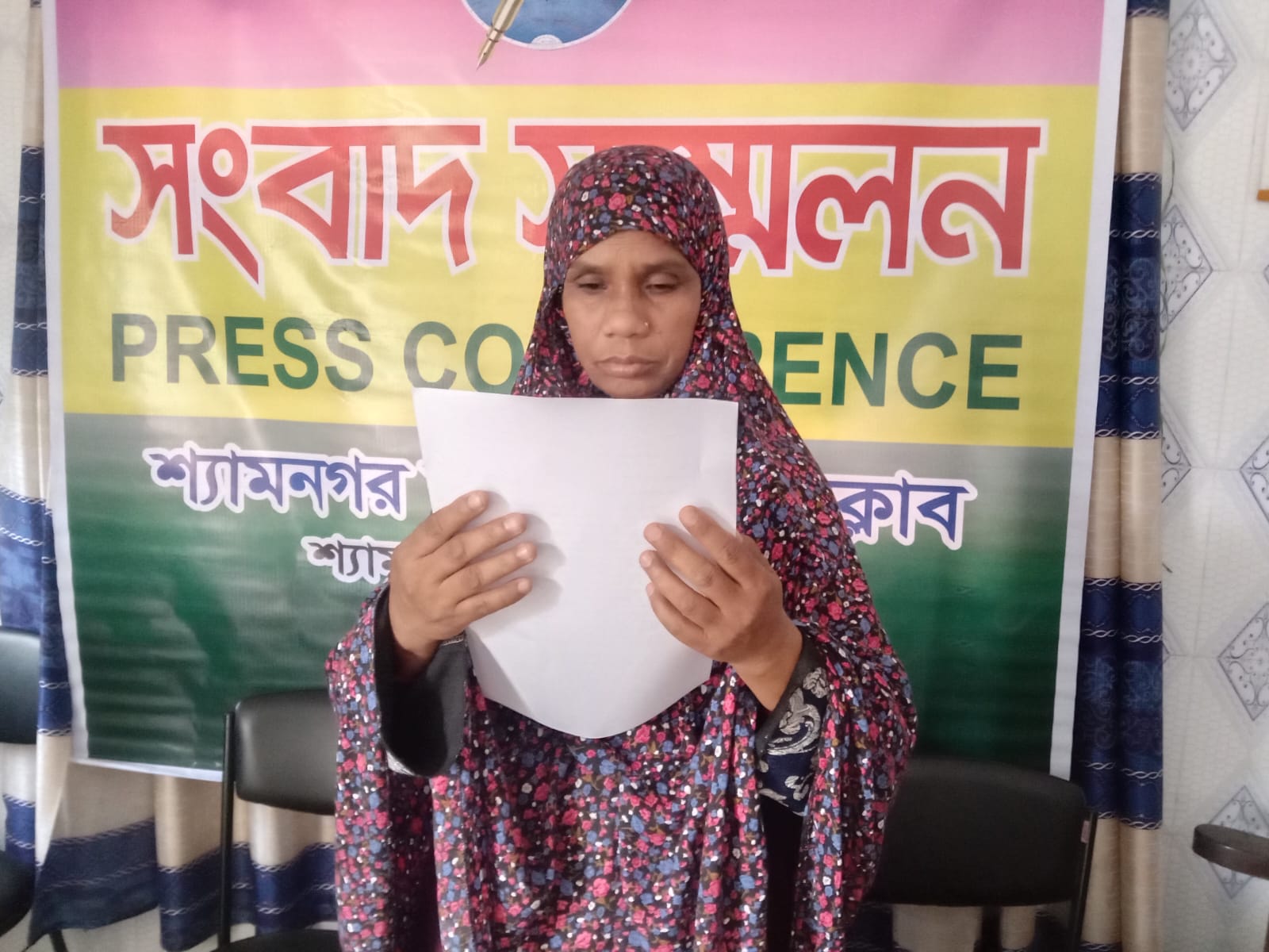 সাতক্ষীরার শ্যামনগর উপজেলার কৈখালী ইউনিয়নের জয়াখালী গ্রামের মোছাঃ হাসিনা বেগম লিখিত সংবাদ সম্মেলনের মাধ্যমে অভিযোগ করেছেন যে, তার স্বামী মোঃ সিরাজুল হকের নামে থাকা সম্পত্তির ওপর প্রতিবেশীরা জোরপূর্বক দখলের চেষ্টা করছে এবং বিভিন্নভাবে হুমকি-ধামকি দিচ্ছে।
