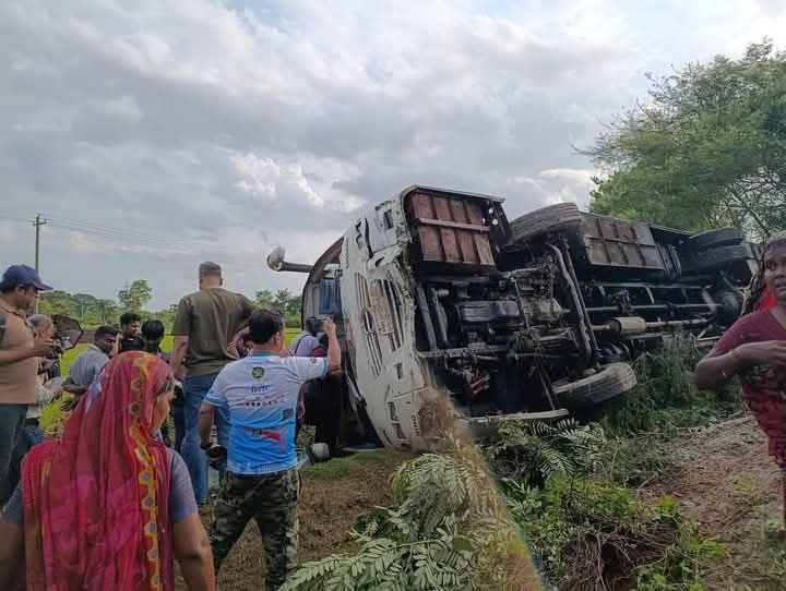 প্রত্যক্ষদর্শী ও স্থানীয় সূত্রে জানা গেছে, ঢাকামুখী সাংবাদিকবাহী বাসটি হঠাৎ নিয়ন্ত্রণ হারিয়ে সড়কের পাশে খাদে পড়ে গেলে বাসে থাকা অনেকেই কমবেশি আহত হন। তবে সৌভাগ্যবশত কেউ প্রাণ হারাননি, সকলেই প্রাণে বেঁচে গেছেন। আহতদের স্থানীয়ভাবে চিকিৎসা দেওয়া হচ্ছে।