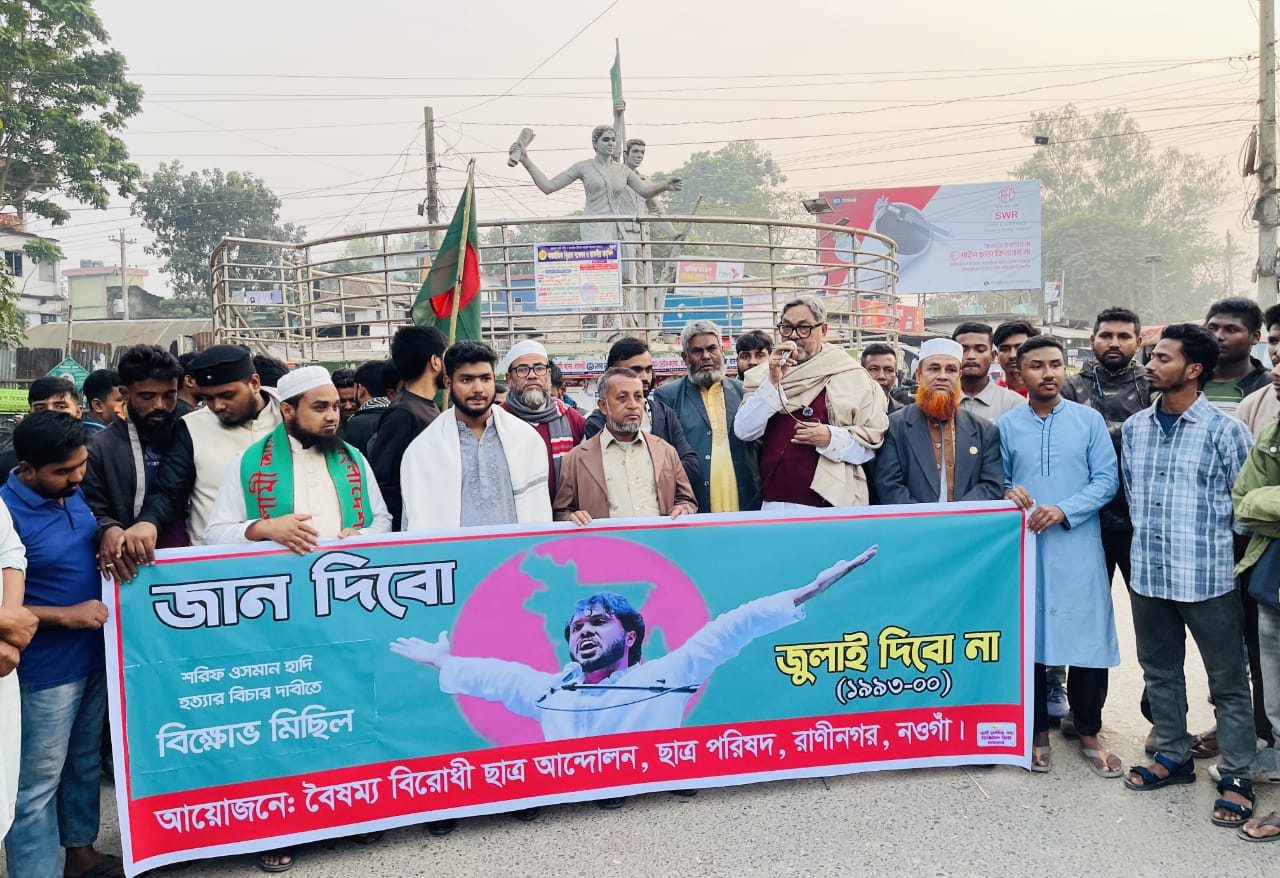 হাদি হত্যার বিচারের দাবিতে রাণীনগরে বিক্ষোভ মিছিল