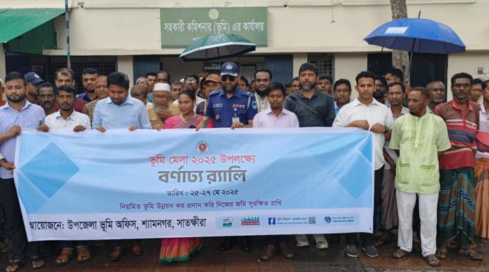 নিয়মিত ভূমি উন্নয়ন কর প্রদান করি, নিজের জমি সুরক্ষিত রাখি” এই প্রতিপাদ্যকে সামনে রেখে সাতক্ষীরার কালিগঞ্জে তিন দিনব্যাপী ভূমি সেবা মেলা, র্যালি ও আলোচনা সভা অনুষ্ঠিত হয়েছে। রবিবার (২৫ মে)