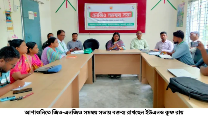 আশাশুনিতে জিও-এনজিও সমন্বয় সভা অনুষ্ঠিত হয়েছে। মঙ্গলবার সকাল সাড়ে ১০টায় উপজেলা পরিষদ সম্মেলন কক্ষে এ সভা অনুষ্ঠিত হয়। উপজেলা সমাজ সেবা অফিসার রফিকুল ইসলামের সভাপতিত্বে সভায় প্রধান অতিথি হিসাবে