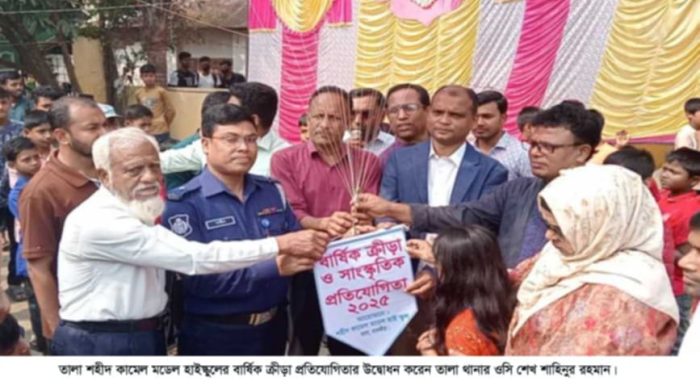 তালা শহীদ কামেল মডেল হাইস্কুলের বার্ষিক ক্রীড়া ও সাংস্কৃতিক প্রতিযোগিতার উদ্বোধন করা হয়েছে। সোমবার (২৪ ফেব্রুয়ারী) সকালে দুই দিনব্যাপী উক্ত প্রতিযোগিতার উদ্বোধন করেন তালা থানার অফিসার ইনচার্জ (ওসি) শেখ
